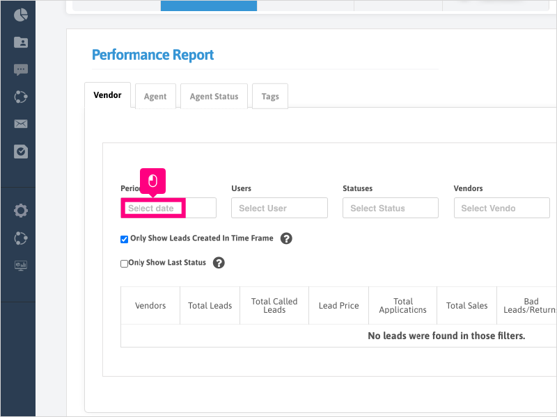 1. To access & set up your Vendor Performance Reports, click on Dashboard