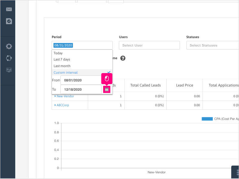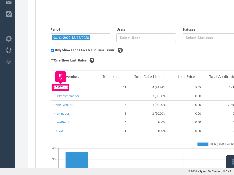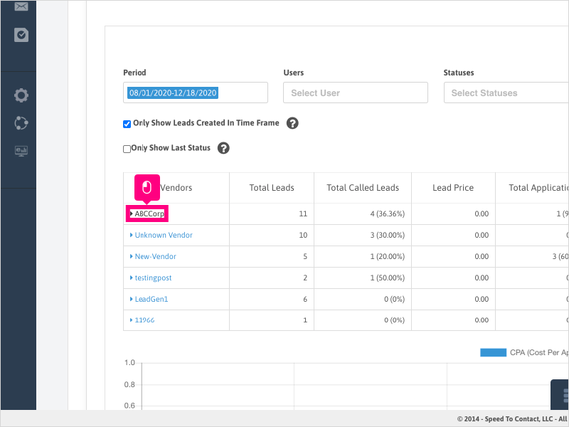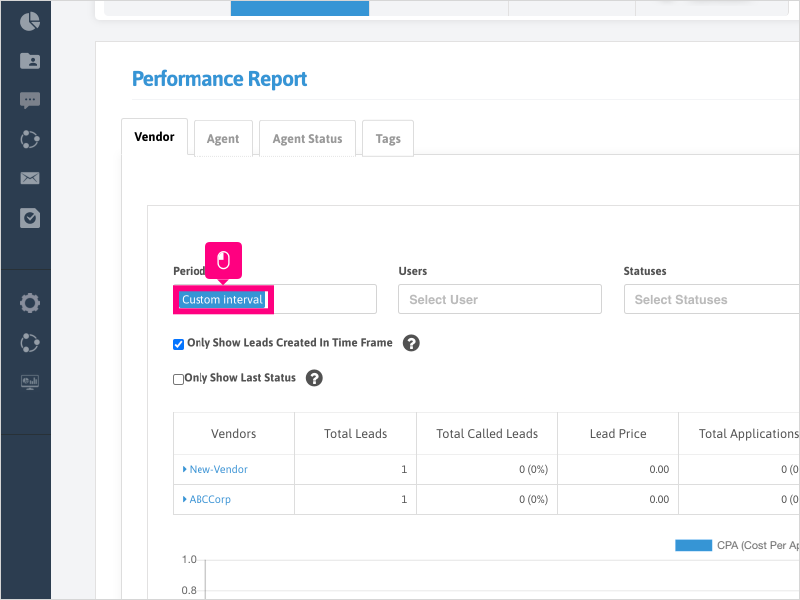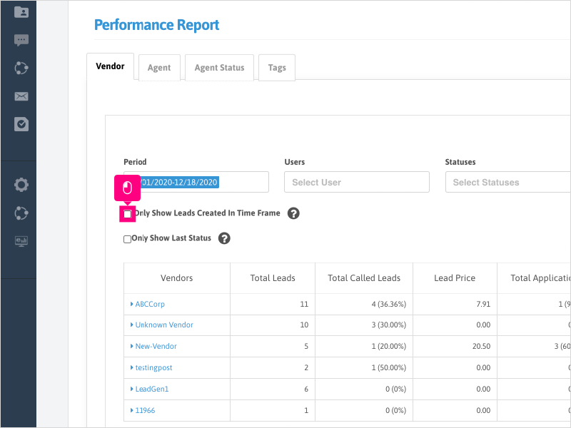 18. If you want to show all leads/vendors that had activity in the timeframe selected (not just leads/vendors created in the timeframe), you can uncheck the box for "Only Show Leads Created in Time Frame" option.