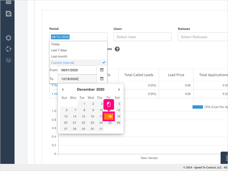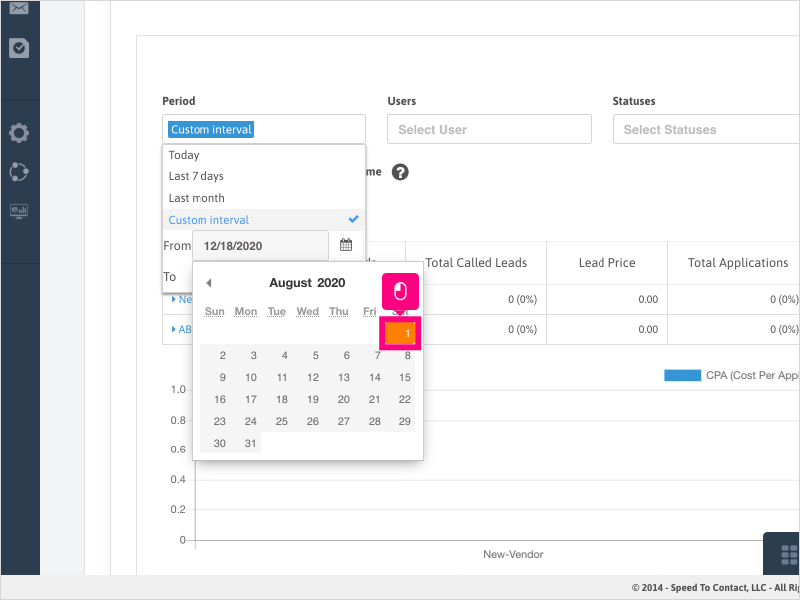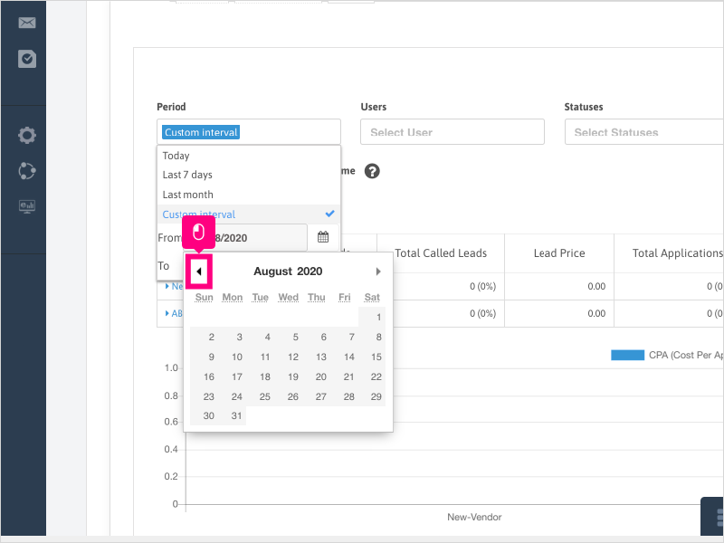 5. Click Custom interval again to bring up the calendar options