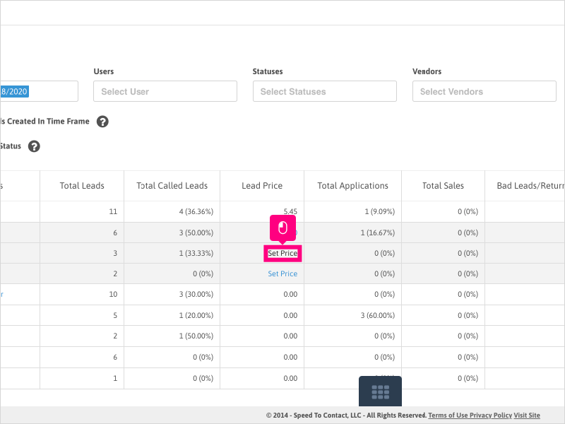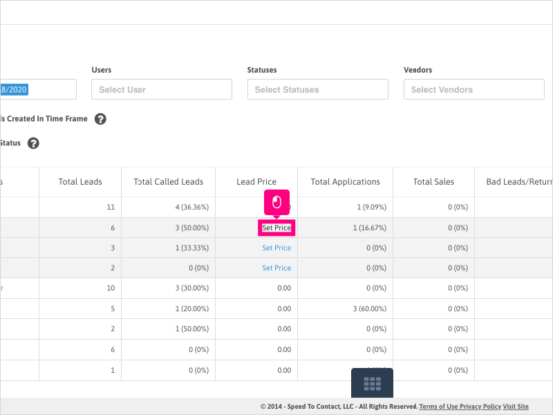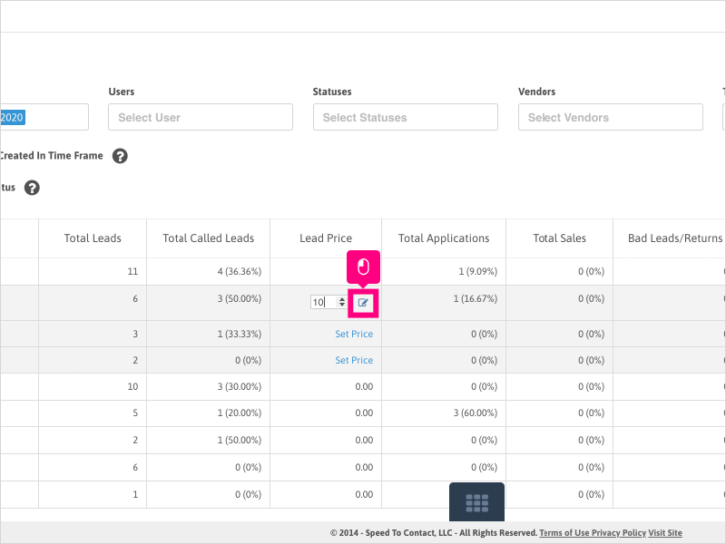 1. To change or update the pricing for your vendor leads, click on Dashboard