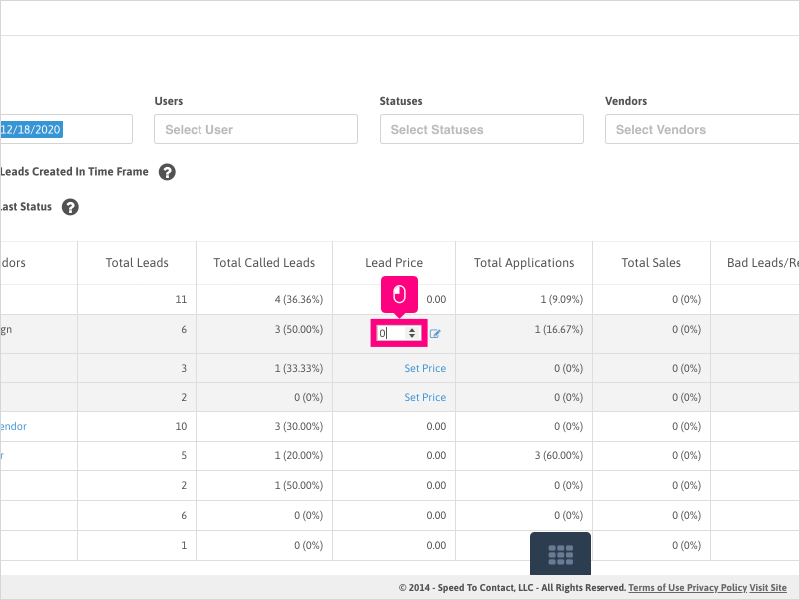The Lead Price will also perform a group average based on all the campaign lead pricing. If you have more campaigns to edit, click the vendor name again to show all Campaigns