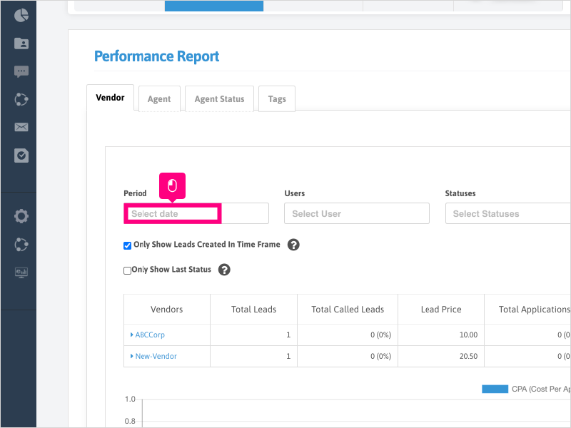 1. To add columns for statuses to my Vendor Performance Report, click on Dashboard