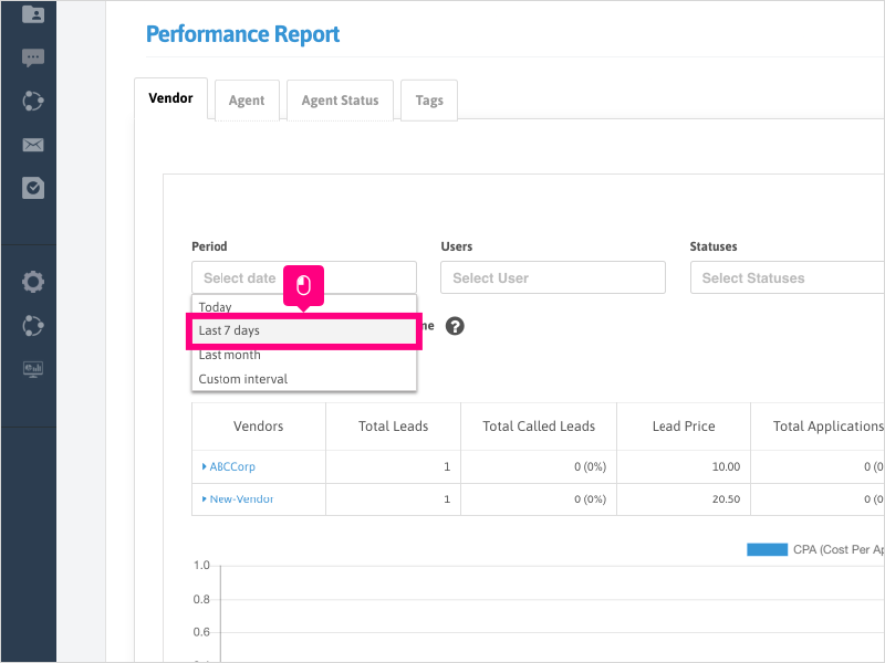 3. In the "Period" section, click Select date and pick your date range that you want to run your report.
