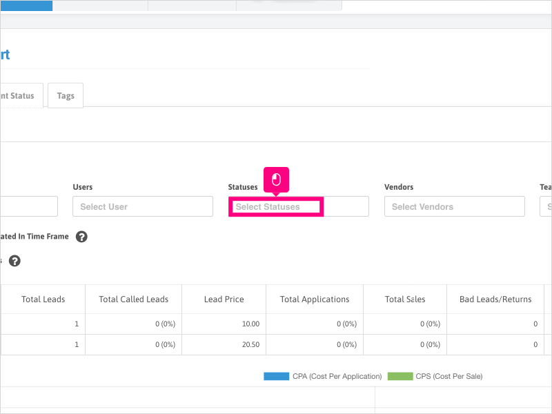 5. Click Select Statuses and search for the status or statuses you want to add a column for on your report.