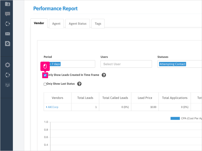 7. If you want to search for all leads that had activity in the time frame selected (and not just leads that were created in the time frame), uncheck the box for "Only Show Leads Created in Time Frame"