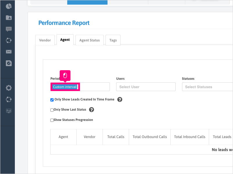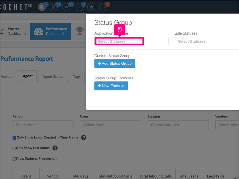 1. To access & set up your Agent Performance Reports, click on Dashboard