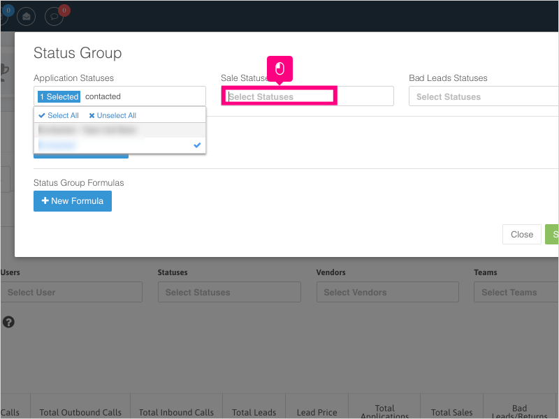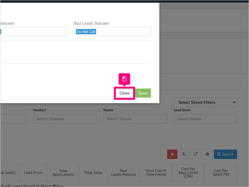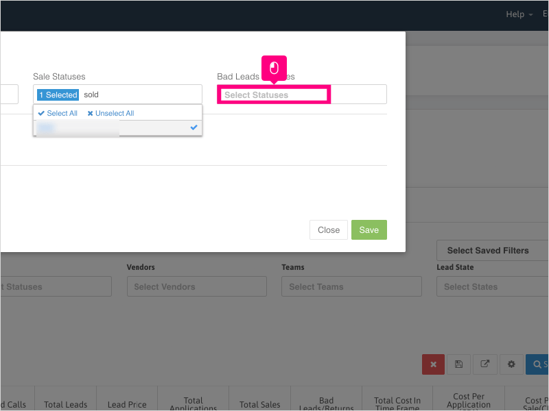 7. Click Select Statuses inside the Bad Lead Statuses area to select a status or statuses that you would deem as a Bad Lead status.