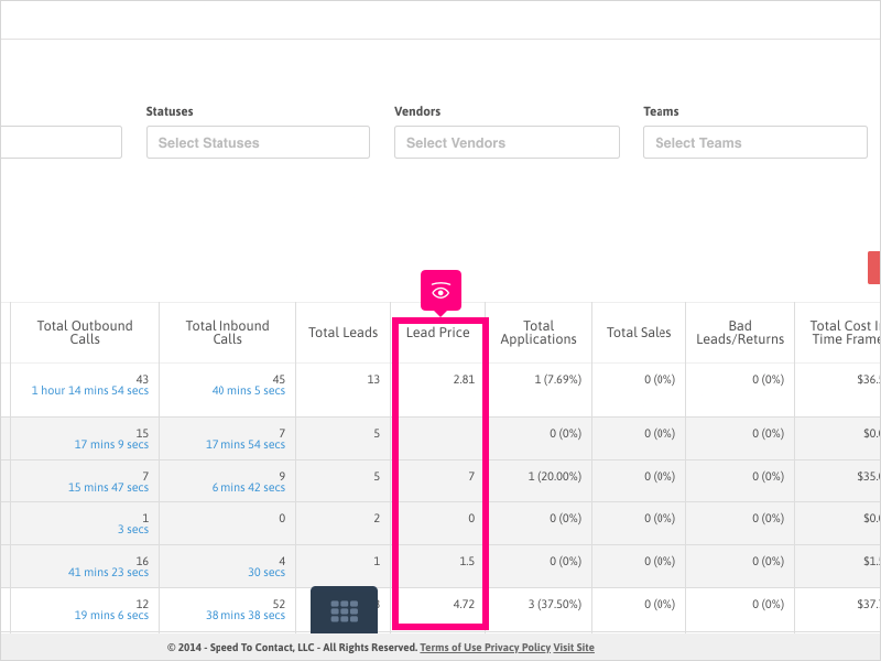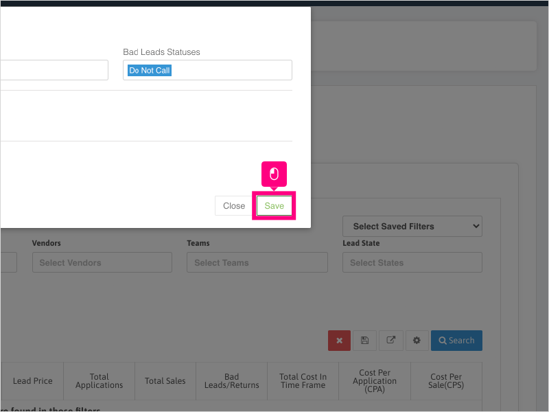 19. If you have not completed adding lead pricing, you'll need to add lead pricing for each vendor/campaign on the "Vendor" tab. For more info, review this tutorial: Lead Pricing.