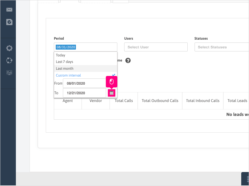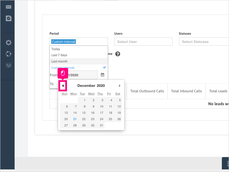 Press the calendar icon for the "From" date selector to reveal the calendar option.