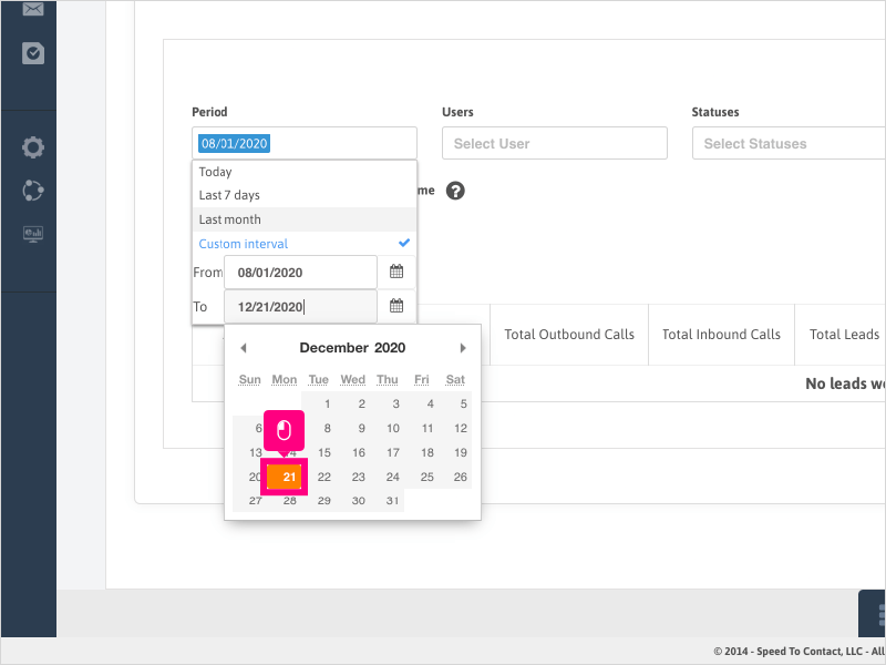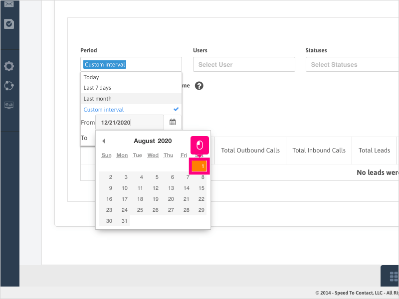 Click Select date under the "Period" section. Choose your date range that you want to run your report for.