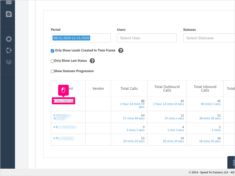 18. Expand each Agent dropdown to see any associated Vendor calls breakdown.