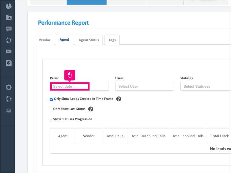 8. If you want to search for all leads that had call activity in the time frame selected (and not just leads that were created in the time frame), uncheck the box for "Only Show Leads Created in Time Frame"