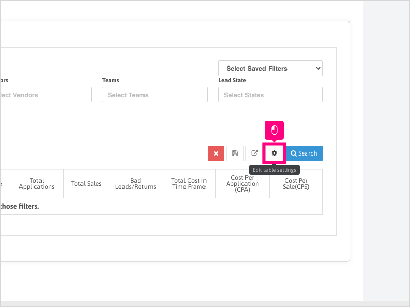 4. Click the gear icon to edit the table settings