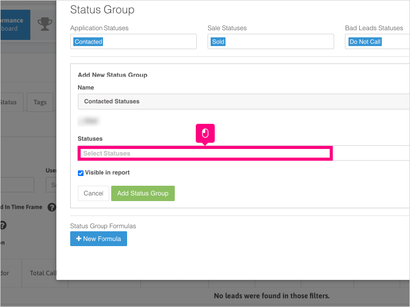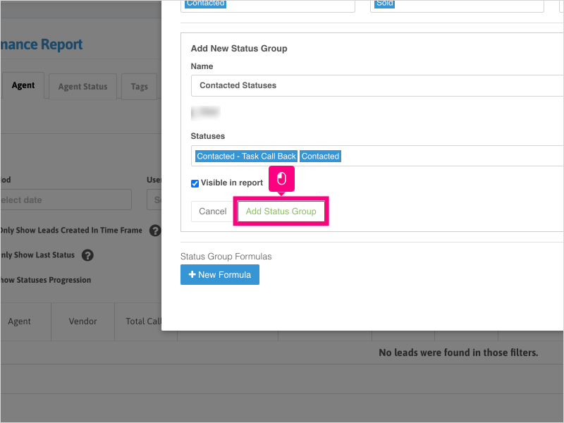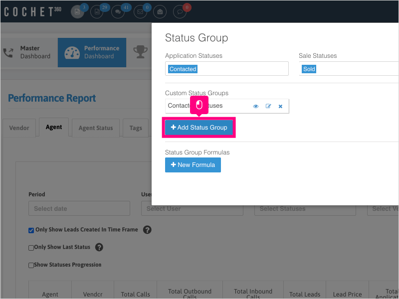 1. To add custom status groups to your Agent Performance Reports, click on Dashboard