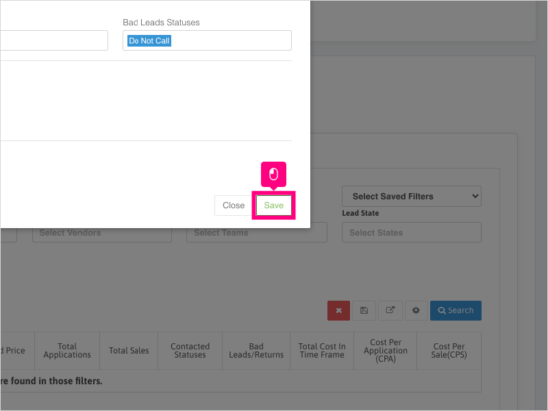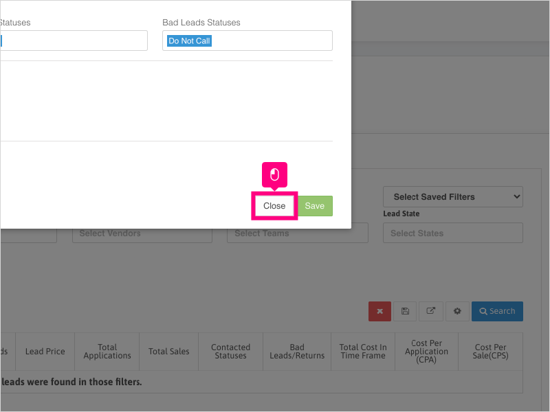 16. If you want to search for all leads that had call activity in the time frame selected (and not just leads that were created in the time frame), uncheck the box for "Only Show Leads Created in Time Frame" and click Search