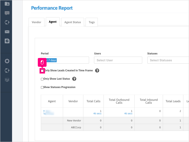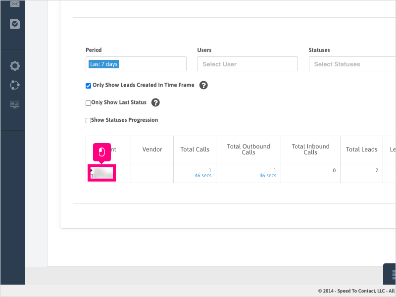 15. Click the Agent name to see a list of Vendors the agent called