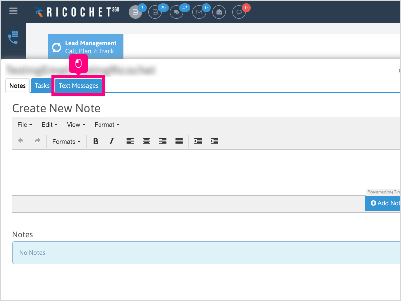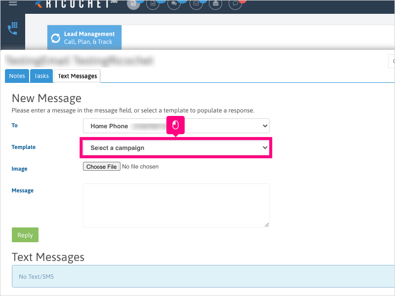 3. If the lead's phone number is not showing by default, or the lead has multiple phone numbers, Click the dropdown for "To" to select a phone number