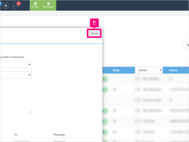 8. Click Close when completed with your outbound text messaging to return to your Lead Management page