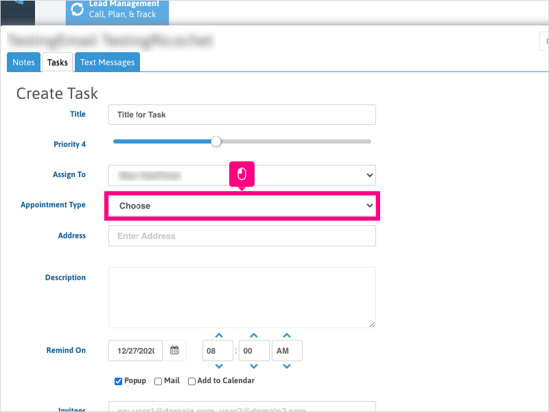 6. If you have Appointment Types enabled and created in your system, you can choose your appointment type from this dropdown.