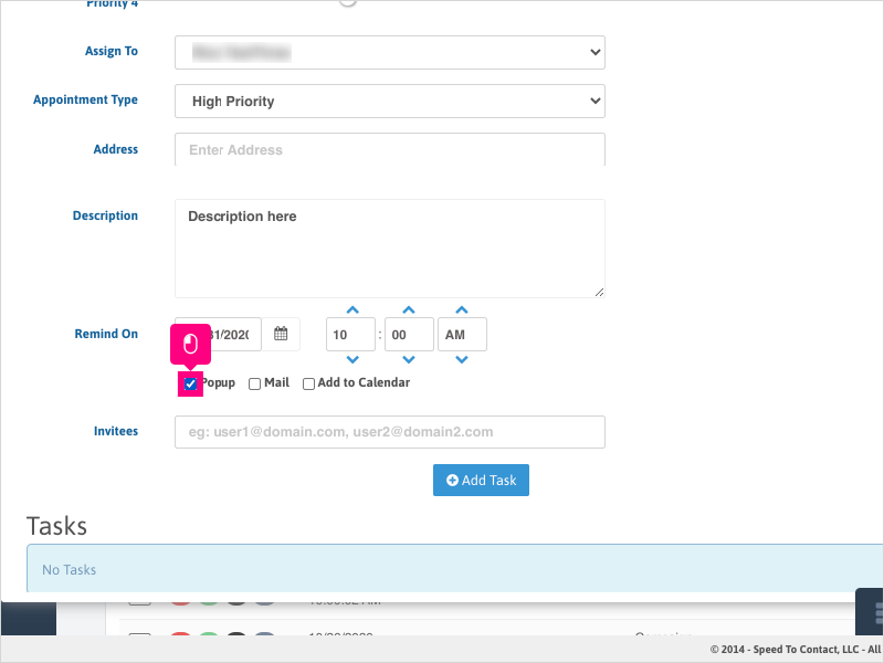 10. Check the "Popup" box if you want the reminder to pop up inside Ricochet.