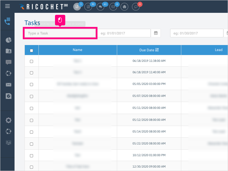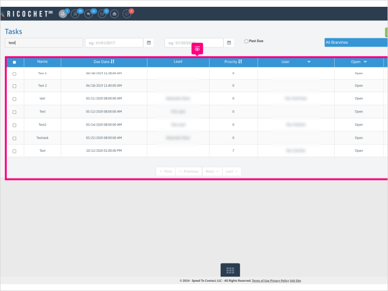 3. The results will show below for any task Name (Title) that contains the text you typed in the search.
