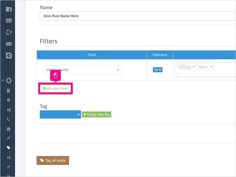 25. If you want to apply this rule and tag to existing leads in Ricochet, once the Distribution Rule is saved, you can click Tag all leads button to run this rule against all leads in Ricochet.