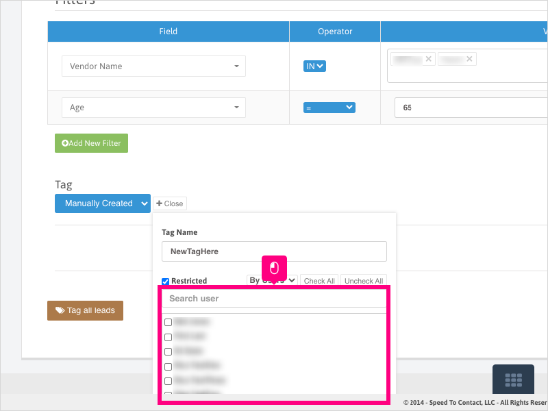 21. Click inside the Search user area or scroll down and select the user or users you wish to restrict this tag to.