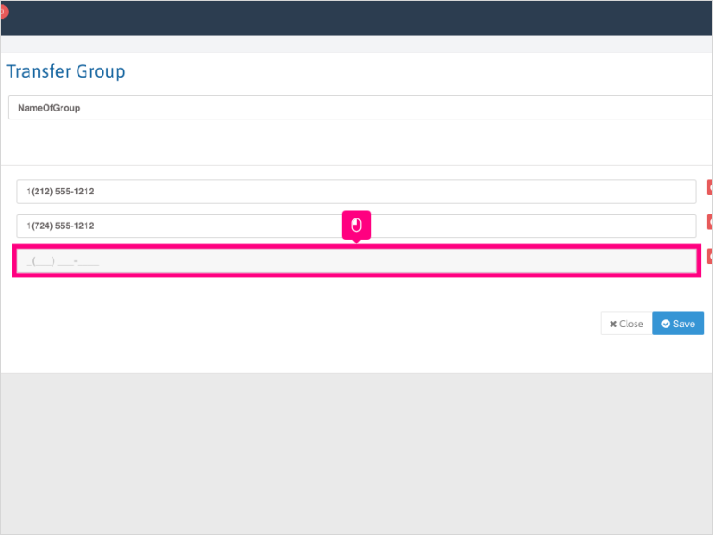 5. Click in the phone number area and type in the phone number to add to this Transfer Group.
