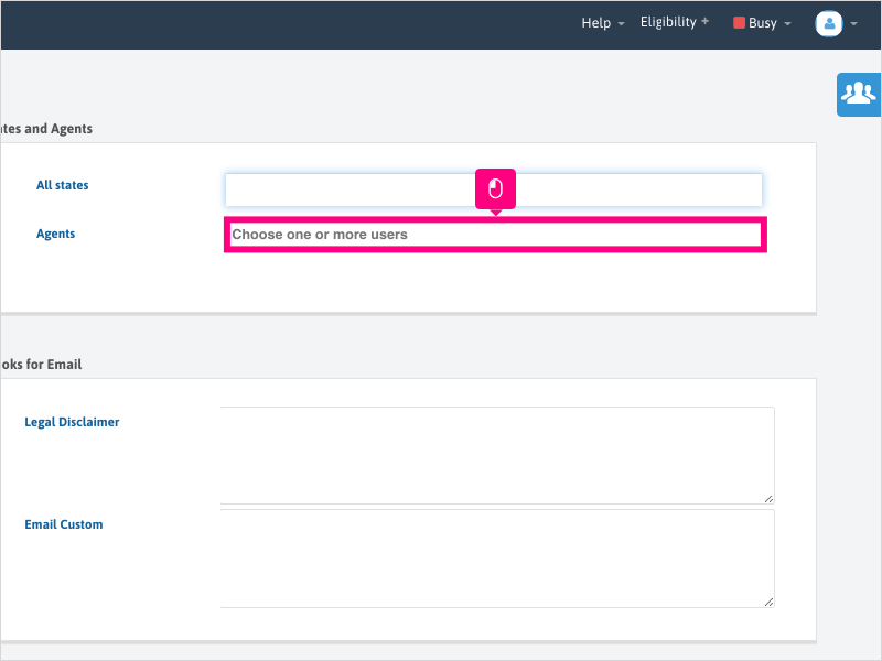 12. Click in the Agents area and choose the agent(s) to be added to this new Branch.