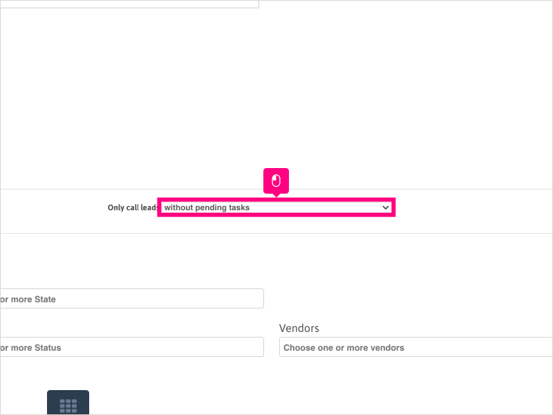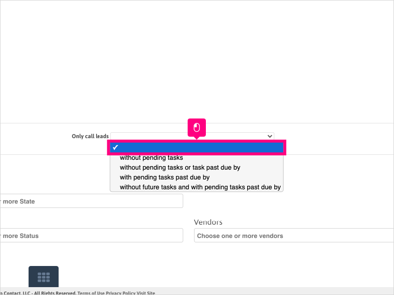 10. Click the dropdown for Only Call Leads to choose to only call leads with or without a pending or past due task.