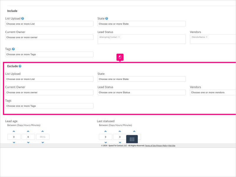 28. You can exclude leads based on certain filter criteria by entering the information in the Exclude section.