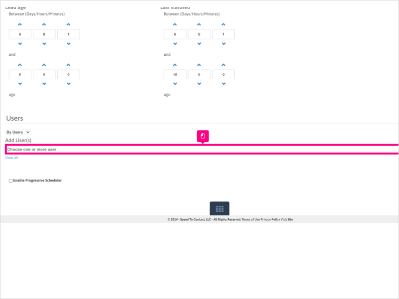 33. Scroll down and click the dropdown in the Users area and choose who you want to be eligible to call leads that meet the filters of this campaign.