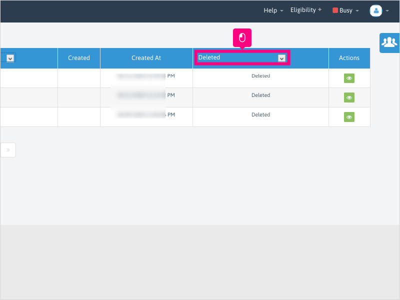7. Chats can be filtered also by the status of the chat (Open, Closed or Deleted).