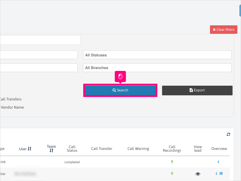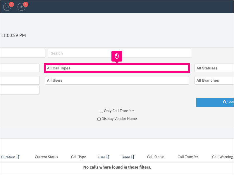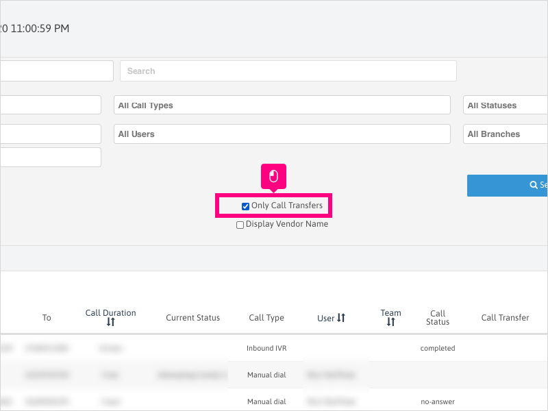17. Click the checkbox for "Only Call Transfers" if you want to filter calls that were Call Transfers only (Warm, Cold, New Line Transfer).