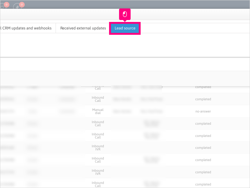 36. The External CRM updates and webhooks tab shows all the updates on the lead sent out from Ricochet to other applications via webhooks.