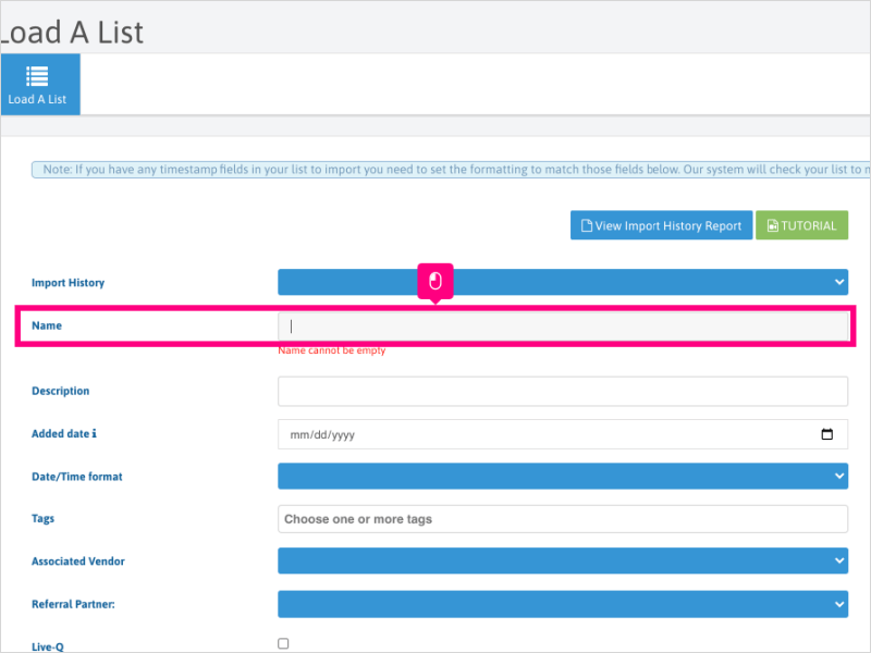 NOTE: The name cannot be the same as a previous list import and cannot be blank.