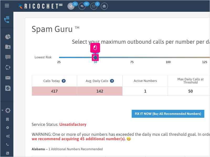 3. Adjust your "Maximum Outbound Calls per Number per Day" by dragging the slider to your desired max calls per number.