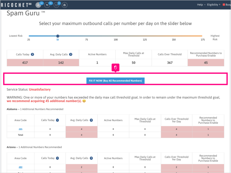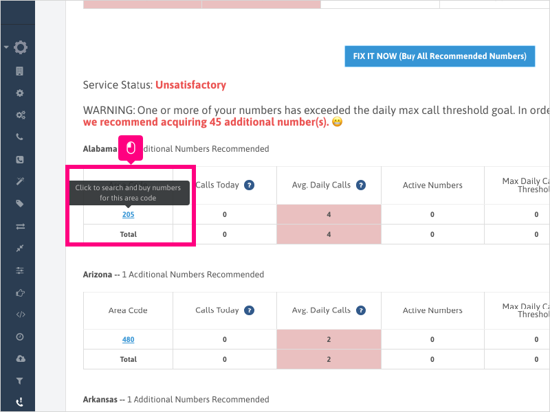 4. If our system detects that you are over your max call threshold for any IVR number, you can fix the issue by purchasing more numbers.