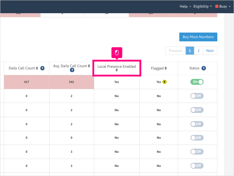 14. You can also filter your Inbound IVR numbers by Local Presence (Local Caller ID) to see which of your Inbound IVR numbers has Local Presence/Local Caller ID enabled.